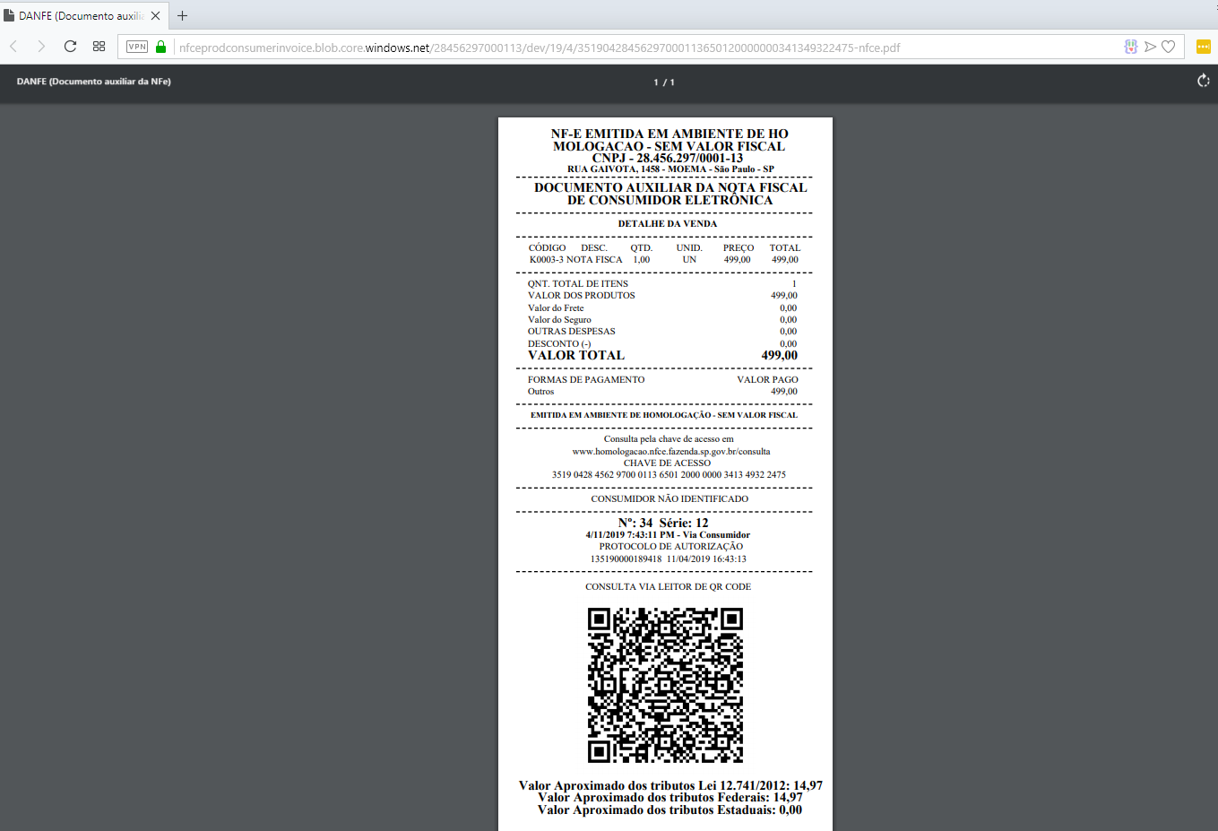 - Consultar PDF (Danfce) da nota fiscal emitida