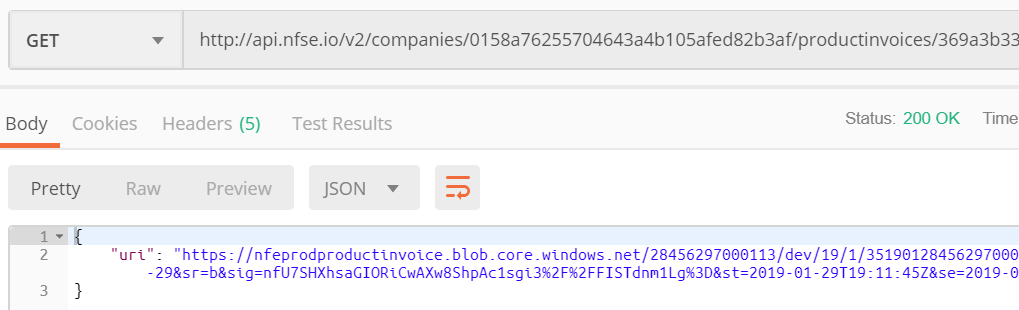 Observação: A consulta de XML e consulta de PDF geram uma nova url temporária (válida por 15 minutos) e necessitará uma nova requisição para receber o dado válido.