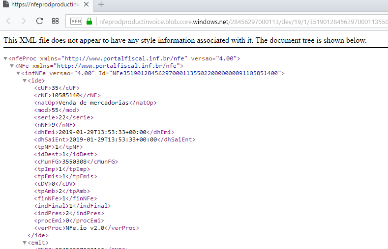 Para consultar o XML é utilizado a mesma URL de requisição de consulta de nota fiscal adicionado de /xml