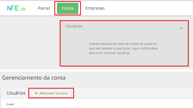 Adicionar novos Usuários a conta
