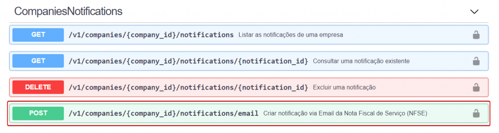 Rolando a sua tela um pouco mais para cima, iremos encontrar as URLs de “CompaniesNotifications”.