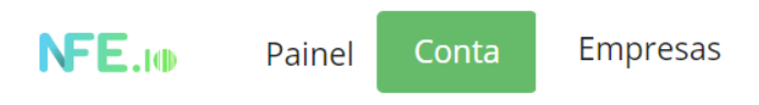 Ao acessar a sua conta da NFE.io é preciso selecionar a opção de “Conta” no menu de opções na barra superior.