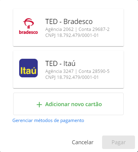 Ao selecionar a opção de Pagar será aberto um popup onde será possível escolher o melhor método de pagamento para você.